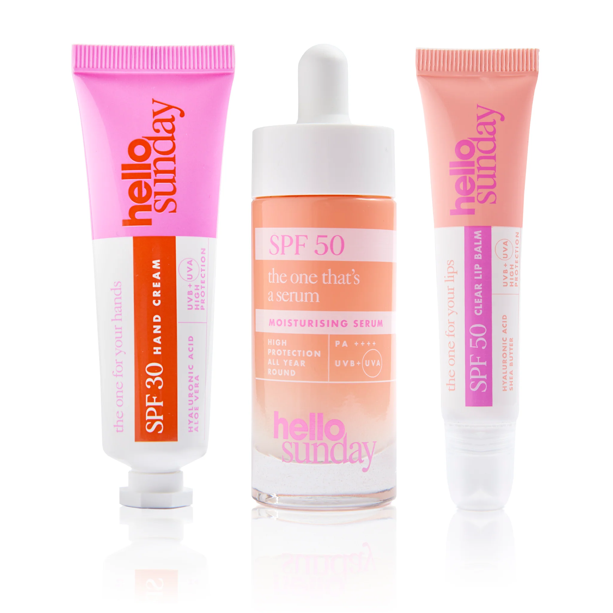 Découvrez votre routine solaire complète avec le coffret The Everyday Essentials de Hello Sunday, pensé pour protéger et hydrater votre peau au quotidien. Ce kit pratique et compact réunit les indispensables pour prendre soin du visage, des mains et des lèvres face aux agressions extérieures. Idéal à la maison, en voyage ou à glisser dans votre sac.