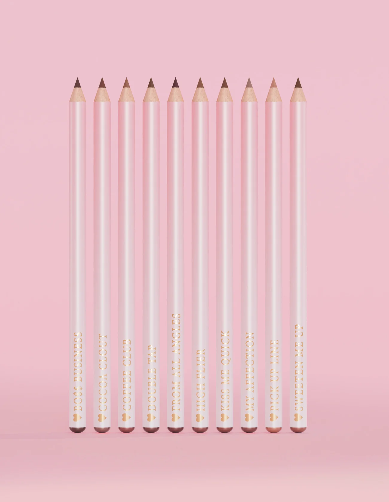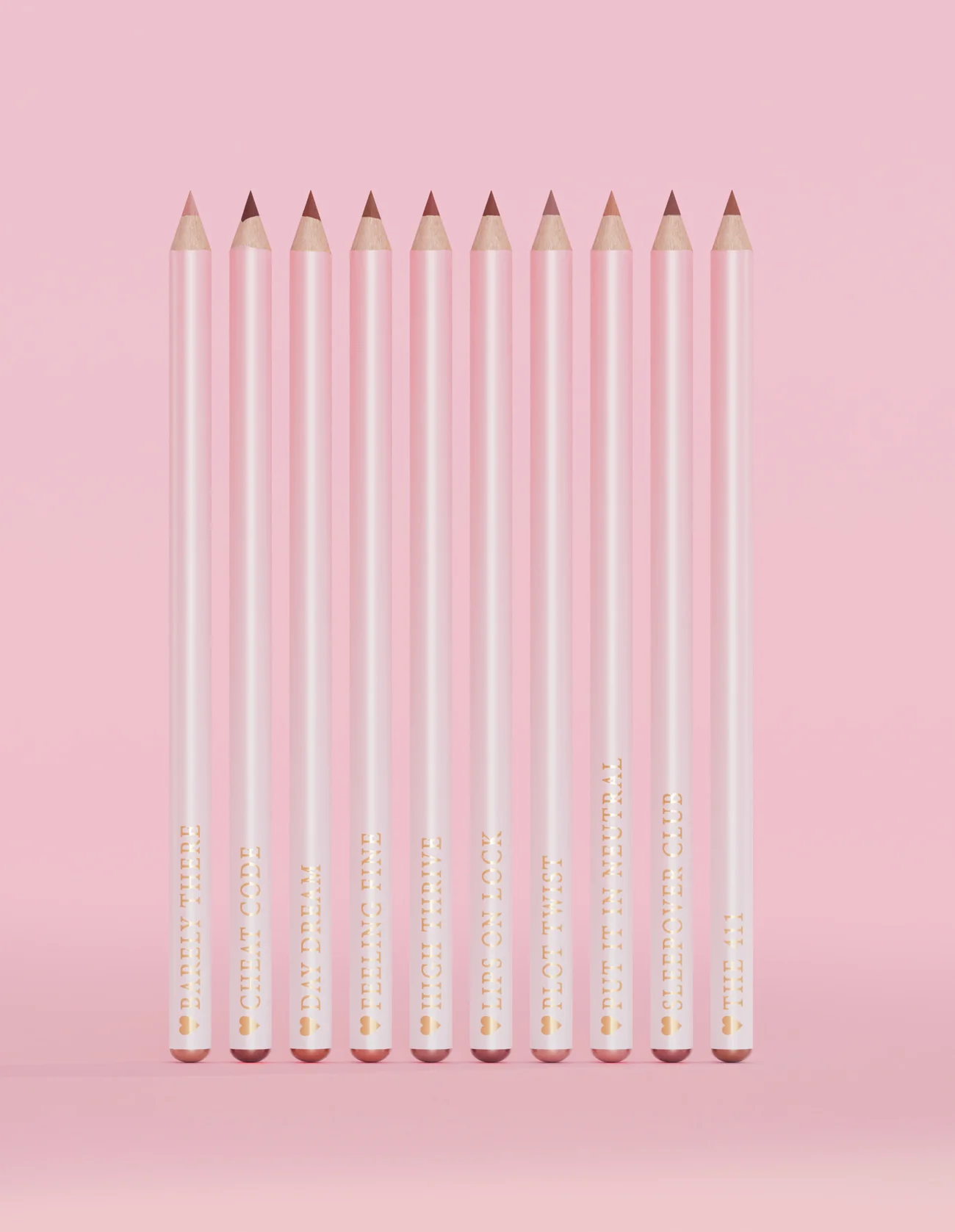 10 crayons à lèvres déclinés en trois coloris différents
