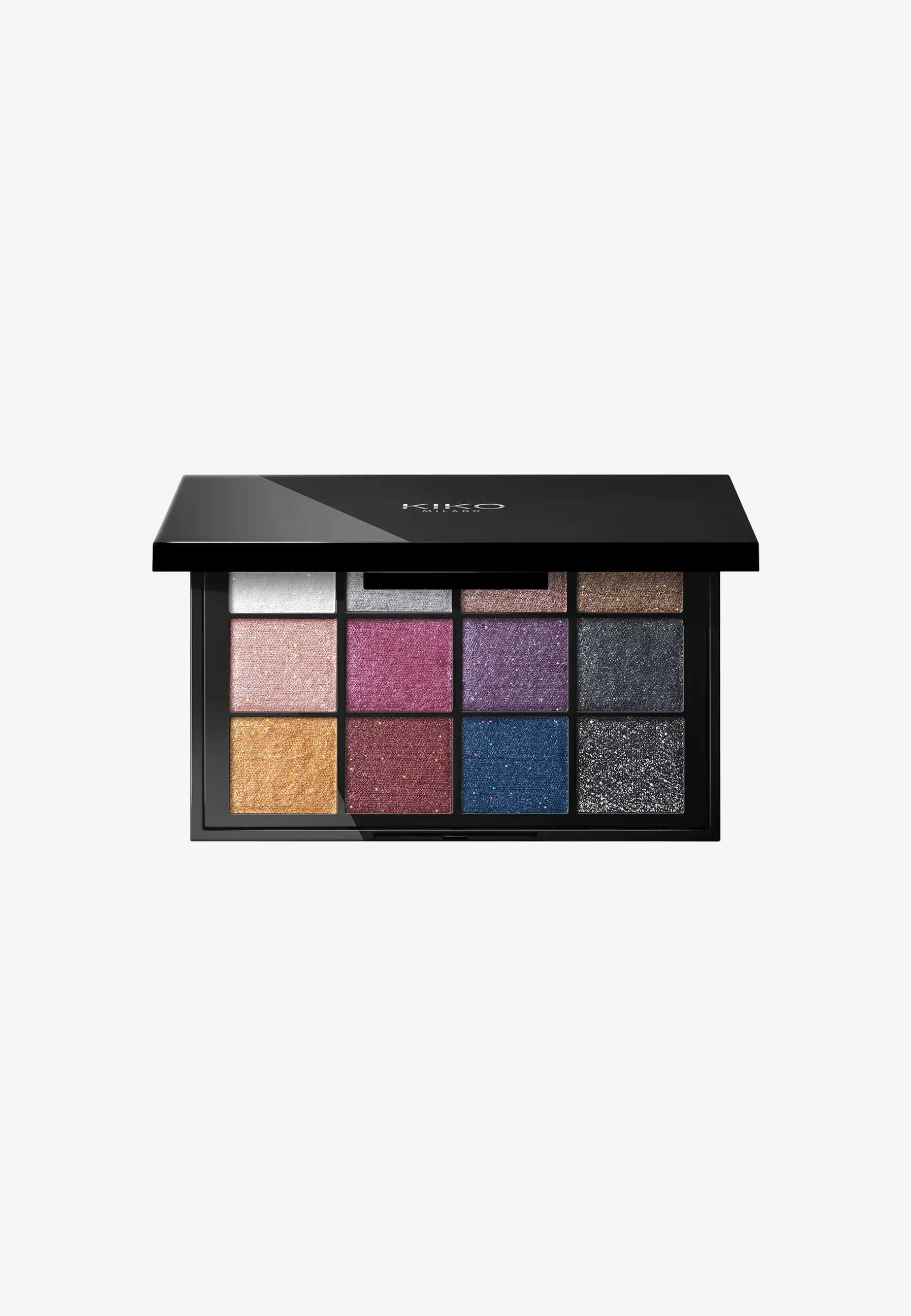 KIKO Milano Cult Colours Eyeshadow Palette – Shocking Sparkle Shades est une palette de maquillage pour les yeux composée de 12 ombres à paupières hautement pigmentées, aux finis sparkle, irisés et lumineux.